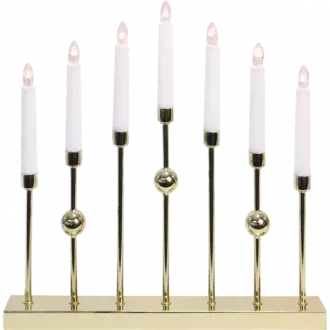 Stilfuld metal lysestage i messing. Lysestagen har 7 lyskilder med et hyggeligt skær. En dekorativ lysestage til at have i hjemmet.