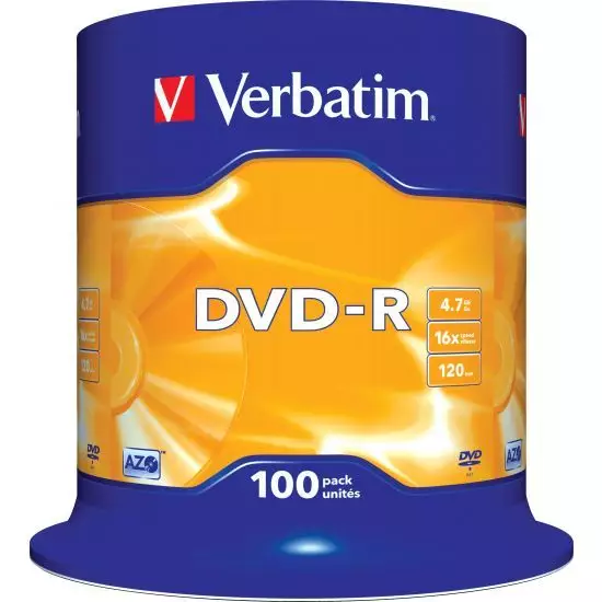 Verbatim DVD-R, 16x, 4,7 GB/120 min, 100-pak spindel, AZO