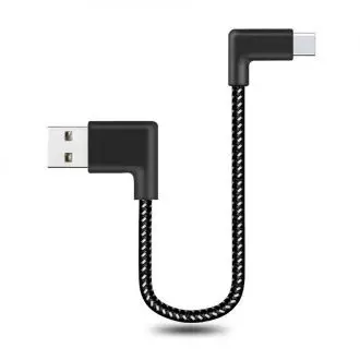 Vinklet USB-C til Type-A ladekabel, 20 cm, perfekt til powerbanks - Sort